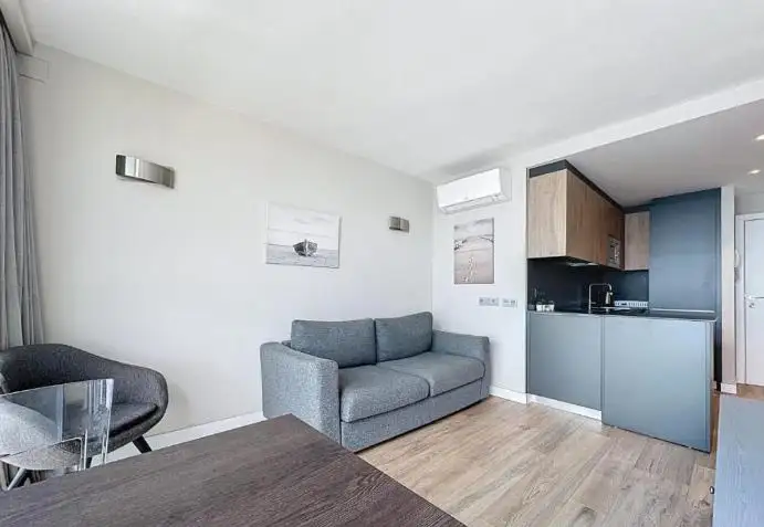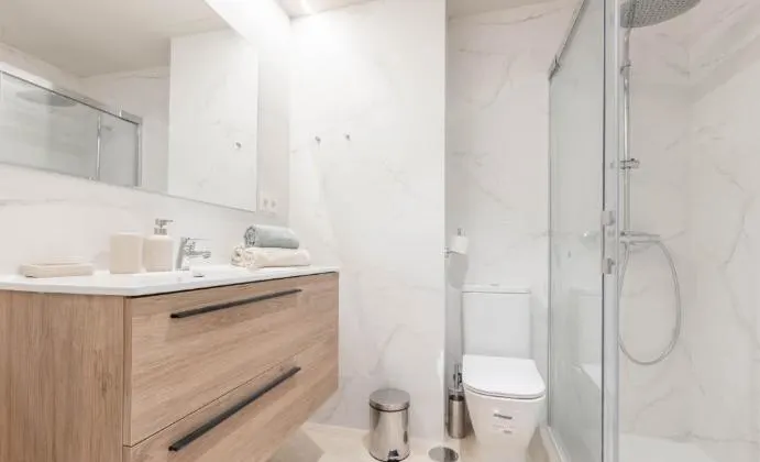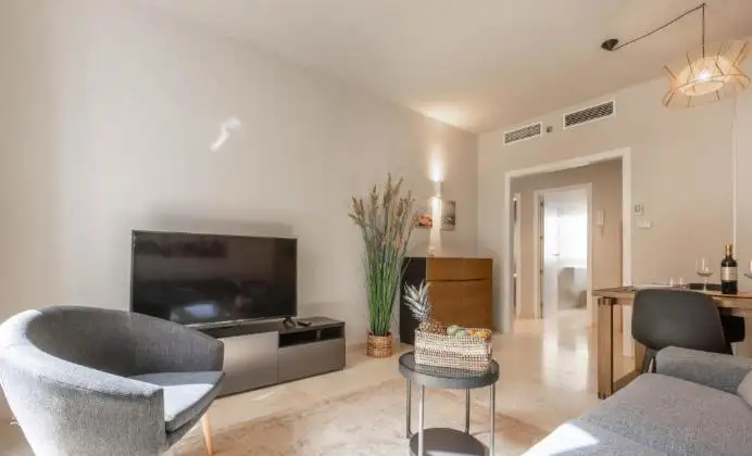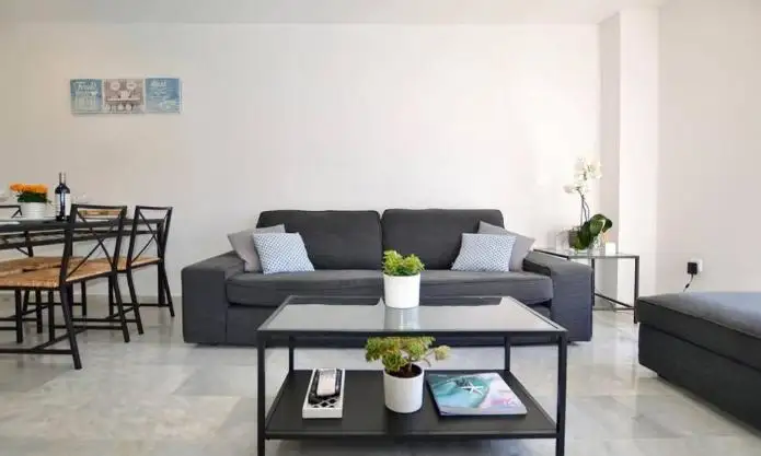 Descripción: Amplio apartamento con una habitación y sofá-cama. Tiene preciosas vistas desde todas las estancias del apartamento. Está a un paso del puerto de Málaga llamado Muelle Uno y muy cerca al casco histórico de Málaga.