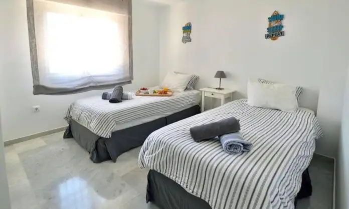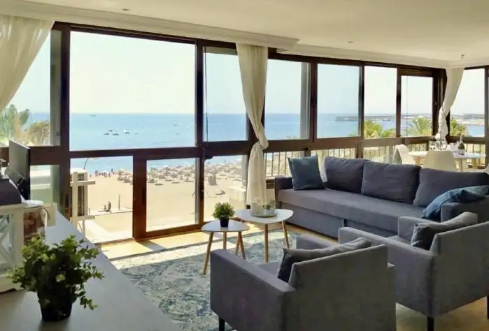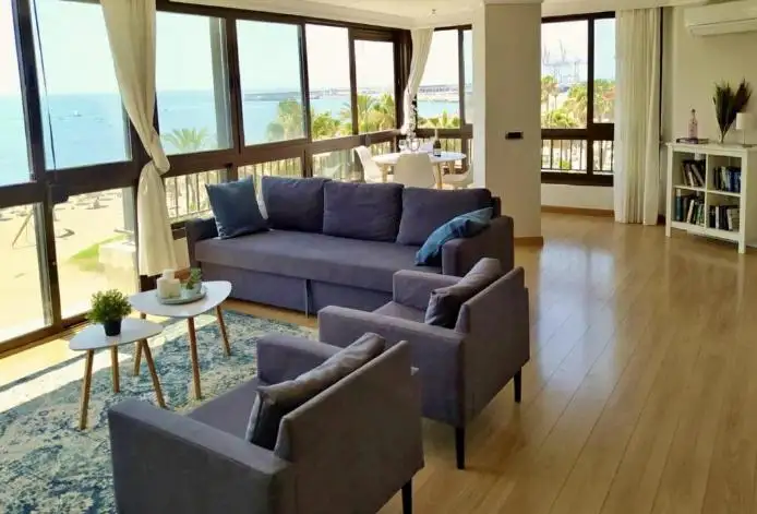 Descripción: Maravilloso y espacioso apartamento en primera línea de playa de la Malagueta. Tiene 2 habitaciones preciosas y 1 sofá cama y tiene todo tipo de detalle para diafrutar de Málaga. Se encuentra juato en la zona de Muelle uno tan famosa de Málaga y muy cerca del centro histórico de Málaga.